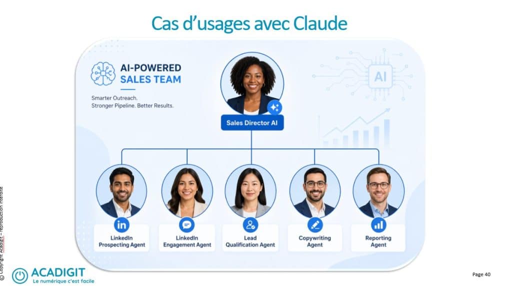 Pour illustrer les usages de l’intelligence artificielle, plusieurs outils ont été présentés avec une approche simple, pragmatique et orientée résultats :